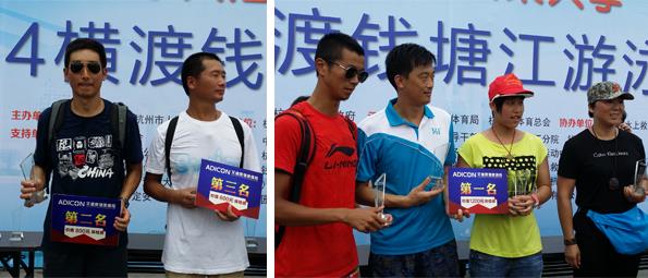 ?????? 今年橫渡錢塘江活動除了群眾性橫渡之外,還增設(shè)了公開水域游泳大獎賽(設(shè)青年、成年男、女共4個組別),11點(diǎn)多頒獎儀式開始。選手們除了拿到大會準(zhǔn)備的獎金獎杯外,我們艾吉團(tuán)體檢中心也為4組的前三名贊助了獎項(xiàng),第一名獲得我們中心提供的價值1200元的體檢券,第二名獲得價值800元的體檢券,第三名獲得價值600元的體檢券。?